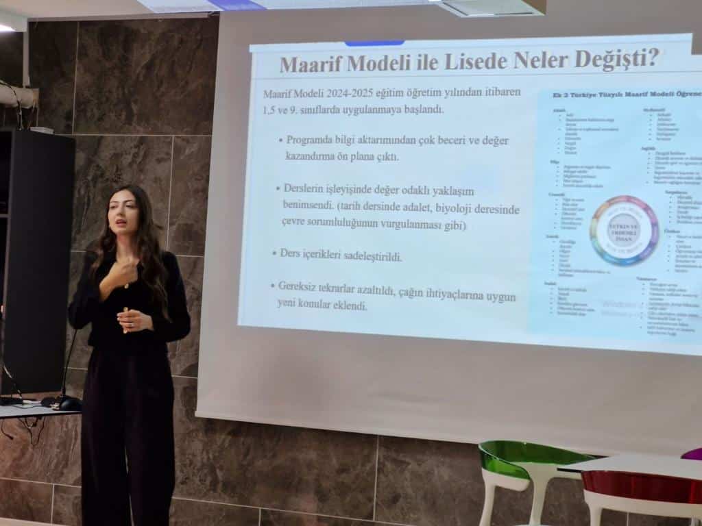 Okulumuzda, 30 Eylül Salı günü Rehber Öğretmenimiz Gizem Yüce tarafından velilerimize yönelik “Türkiye Yüzyılı Maarif Modeli Aile Okulu” konulu bir konferans gerçekleştirilmiştir.